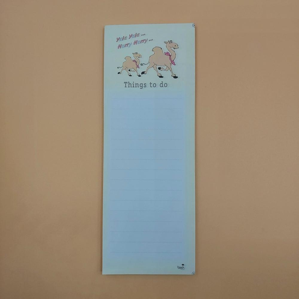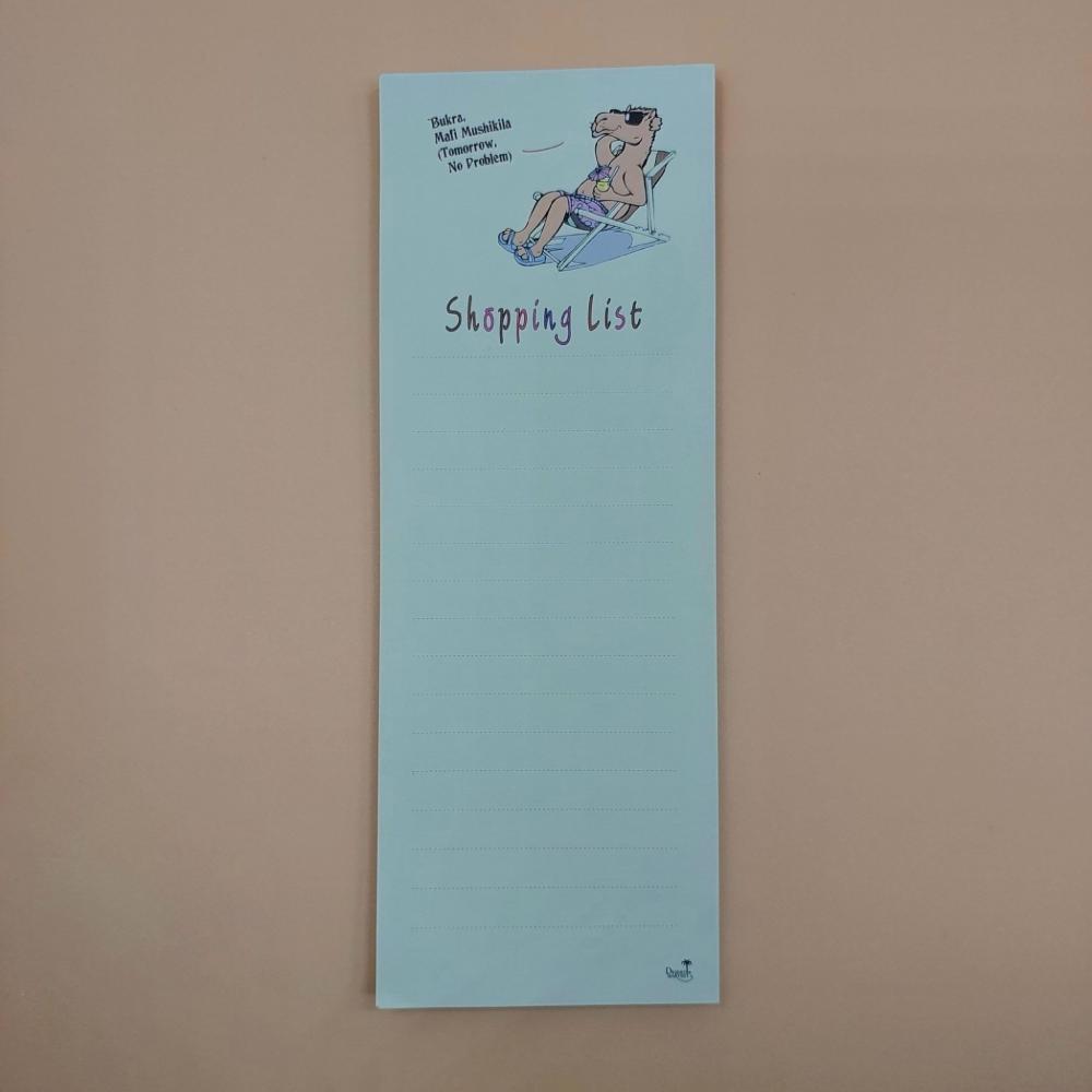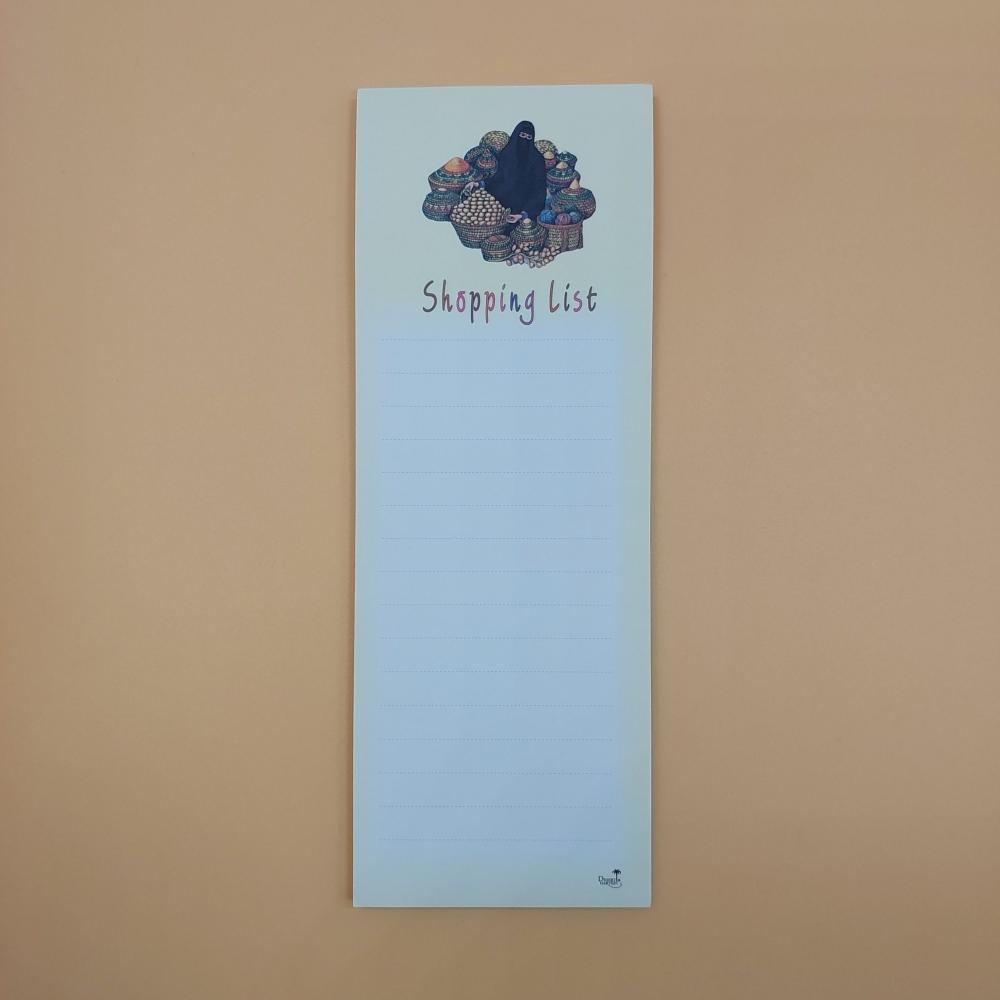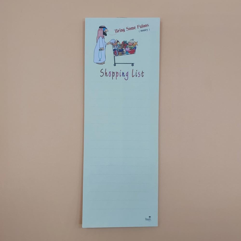 دفاتر ومفكرات مغناطيسية بتصاميم مستوحاة من الثقافة العربية والخليجية، مثالية لتدوين قوائم التسوق والملاحظات اليومية. تأتي بأحجام عملية مع شريط مغناطيسي يلتصق بسهولة على الثلاجة أو أي سطح معدني، لتبقى قائمة مشترياتك أمامك دائماً. خيارات متنوعة برسومات مرحة وأفكار مستوحاة من الحياة اليومية السعودية والعربية.