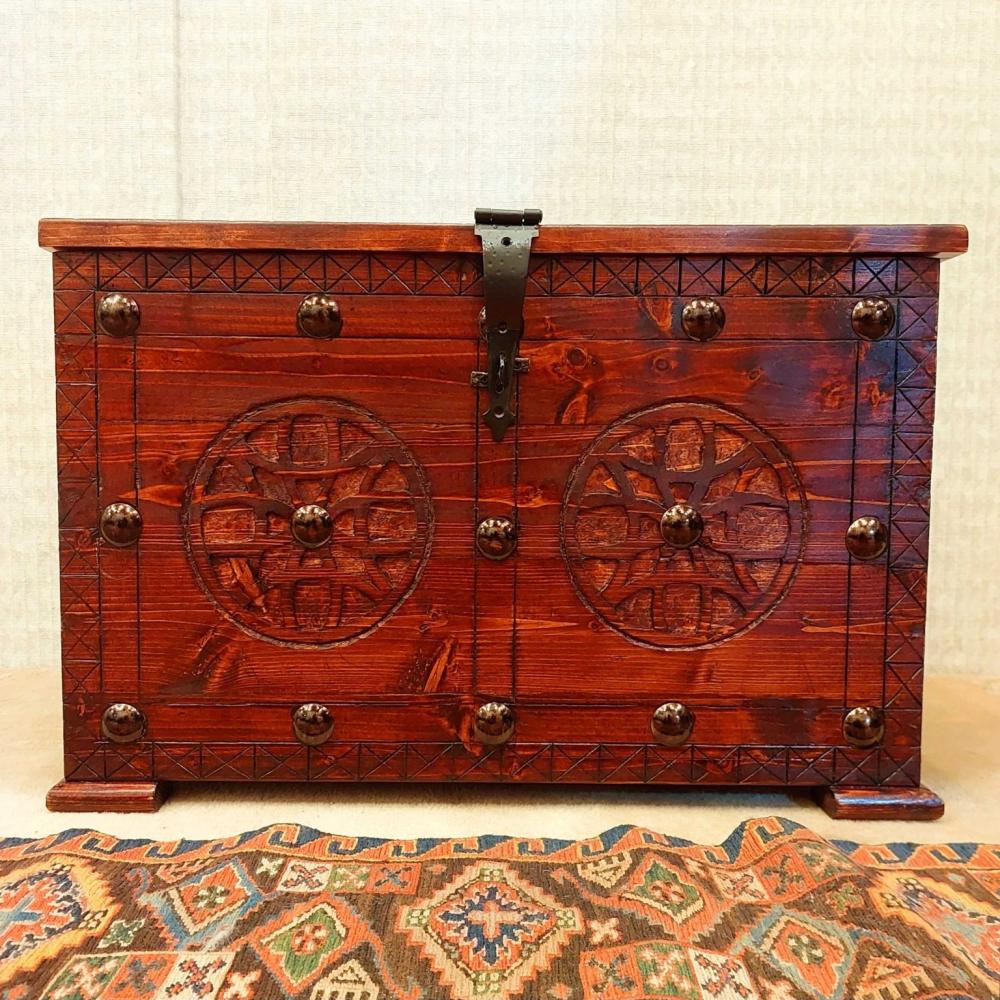 صندوق تراثي سعودي محفور يدوياً بتصميم عتيق - ديكور فاخر وتخزين أنيق