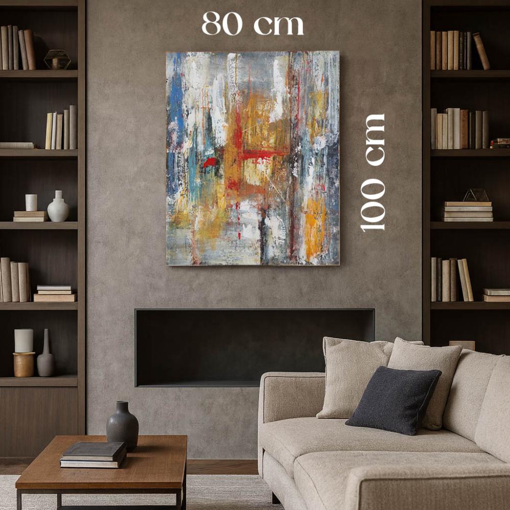 عمل فني أصلي 100٪، مرسوم يدويًا على كانفاس فاخر، بأسلوب تجريدي ينبض بروح محلية معاصرة.